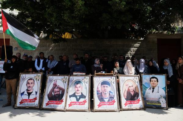 在加沙,数十人在红十字会总部前加入示威,戴着头巾的妇女们举着像马尔万·巴尔古提这样的知名巴勒斯坦囚犯的大幅带框照片。