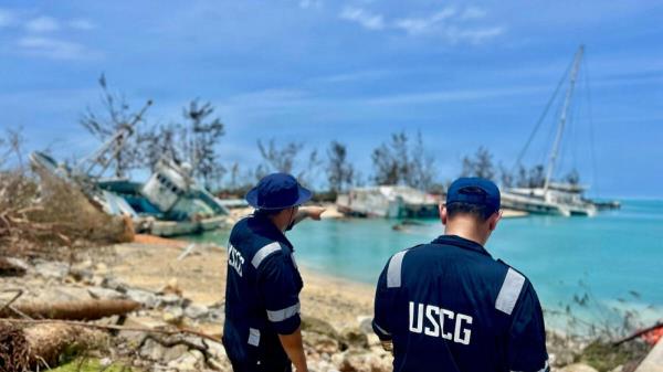 新闻稿指出:"海岸警卫队机组人员继续在北马里亚纳群岛联邦附近海域搜寻五名失踪船员和一艘橙色12人救生筏。"